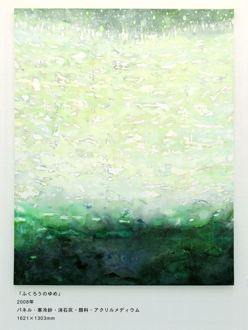 「ふくろうのゆめ」1300×1800mmパネル・寒冷紗・石膏地・顔料・アクリルメディウム