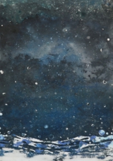 「とおくとおくのそら」652×455mmパネル・寒冷紗・石膏地・顔料・アクリルメディウム