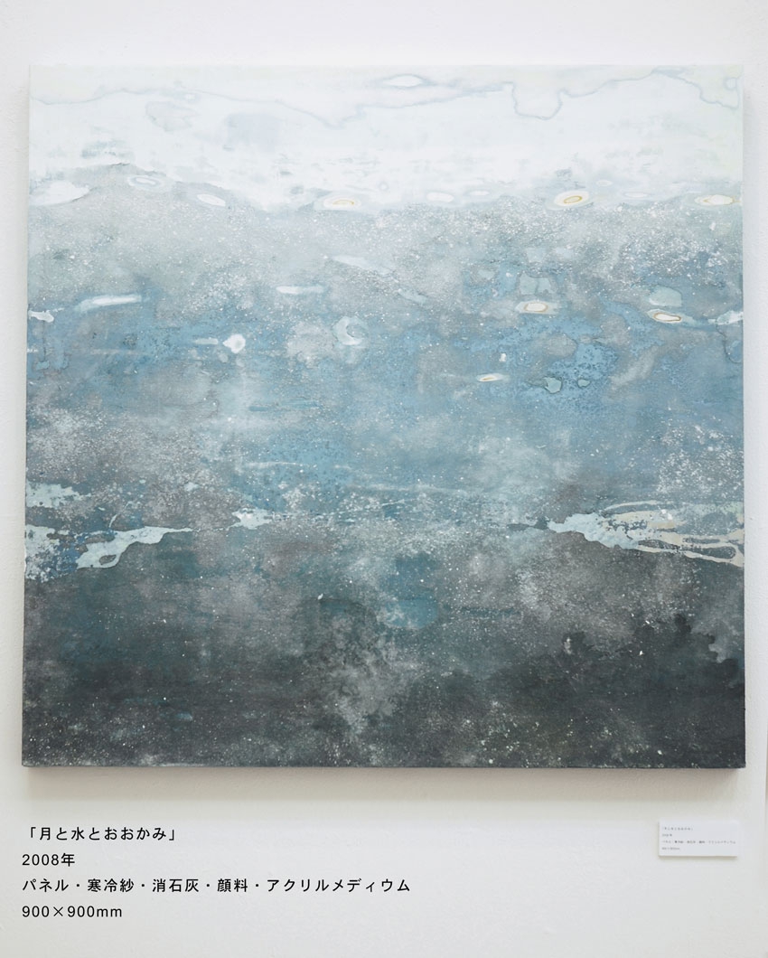 「月と水とおおかみ」900×900mmパネル・寒冷紗・石膏地・顔料・アクリルメディウム