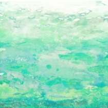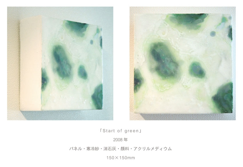 「Start of green」150×150mmパネル・寒冷紗・石膏地・顔料・アクリルメディウム