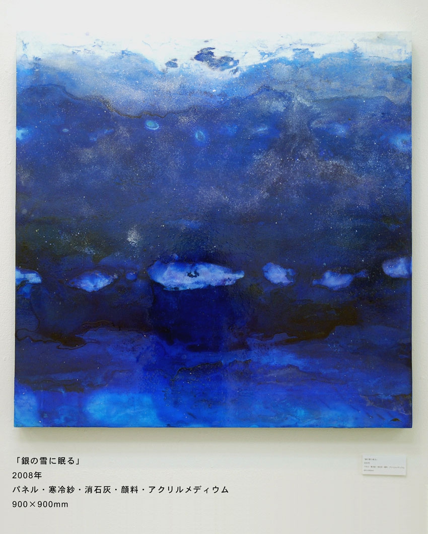 「銀の雪に眠る」900×900mmパネル・寒冷紗・石膏地・顔料・アクリルメディウム
