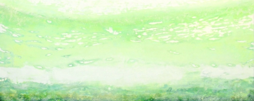 「みずのはな」600×150mmパネル・寒冷紗・石膏地・顔料・アクリルメディウム