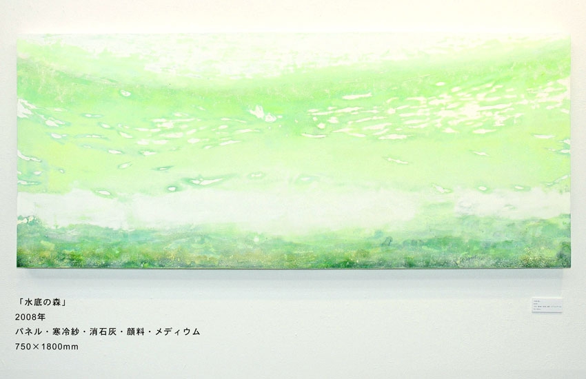 「水底の森」750×1800mmパネル・寒冷紗・石膏地・顔料・アクリルメディウム