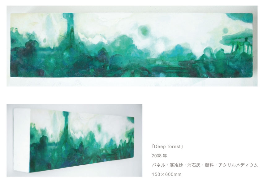 「Deep forest」150×600mmパネル・寒冷紗・石膏地・顔料・アクリルメディウム