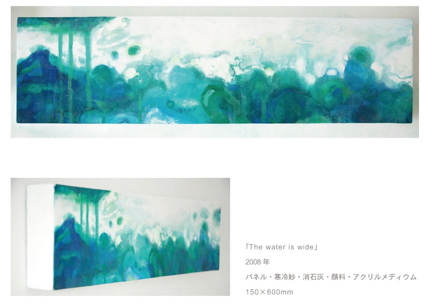 「water is wide」150×600mmパネル・寒冷紗・石膏地・顔料・アクリルメディウム