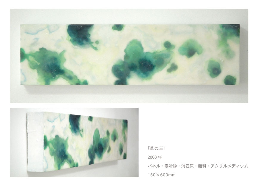「草の王」150×600mmパネル・寒冷紗・石膏地・顔料・アクリルメディウム