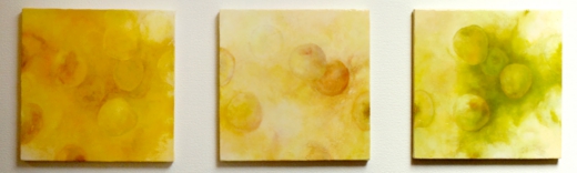 「りんごのバルド /リズム・音・ダンス」各300×300mmパネル・綿布・白亜地・顔料・アクリルメディウム